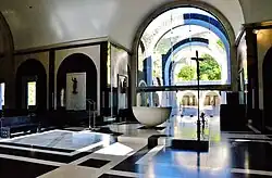Der Bau eines neuen Heiligtums wurde südlich benachbart durch den spanischen Architekten Ricardo Bofill ab dem 8. September 1974 durchgeführt.[3] Das wesentlich größere Gebäude mit den Baustoffen Glas, Kupfer und Naturstein bildet eine Mischung von Elementen wie den romanischen Bögen und einem islamisch inspirierten Brunnen. Es bildet eine Achse über das „konkave Amphitheater, die Riesenstufen, die Brücke über die Straße, die Türme, die romanischen Bögen, die Promenade, das konvexe Theater, den sprudelnden Brunnen und die geformte Kolonnade.“[4] Ein Ziel war die Verschmelzung der Kirche mit der umliegenden Landschaft. Das neue Gebäude wurde am 8. September 1976 geweiht. In seinem Inneren wird eine Replik der romanischen Madonna gezeigt.