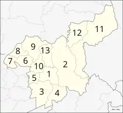 Die Provinz ist unterteilt in 13 Amphoe (‚Bezirke‘ oder ‚Landkreise‘), 111 Tambon (‚Unterbezirke‘ oder ‚Gemeinden‘) und 965 Muban (‚Dörfer‘).