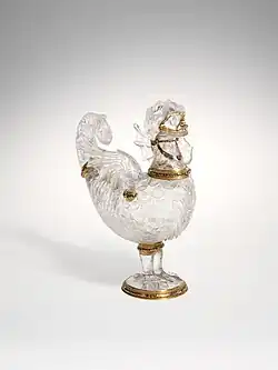 Giov. Ambrogio Saracchi leitete ab 1579 die Werkstatt, in der auch seine Brüder als Steinschneider arbeiteten. Dabei führte Simone die feineren Arbeiten durch wie Verzierungen und Intagli, während Giov. Ambrogio und Stefano Saracchi den groben Zuschnitt und das Formen der Gefäße übernahmen. Verschwägert mit dem Bildhauer und Kristallschneider Annibale Fontana (1540–1587) nutzten sie häufig dessen Entwürfe als Vorlage. Die Saracchi-Werkstatt hatte vermögende Kunden wie den Bayerischen Hof, Kaiser Maximilian, Emanuel Philibert von Savoyen, die Herzöge von Mantua und die Medici. In einem Brief an ihren Kunden Albrecht V. vom 13. Januar 1573 boten die Sarrachi-Brüder an, in München eine Werkstatt zu eröffnen, was aber aus Kostengründen abgelehnt wurde. 1586 mieteten sie innerhalb Mailands ein größeres Haus mit Werkstatt und Verkaufsladen. Später führten Giov. Ambrogio Saracchis Söhne Pietro Antonio, Gasparo und Costanzo die Werkstatt weiter, wobei sie teilweise auch Goldschmiedearbeiten anfertigten und vermutlich auch in Mantua wirkten. Die Künstlerfamilie Saracchi ist bis in die 1630er Jahre in Mailand nachgewiesen.[2]