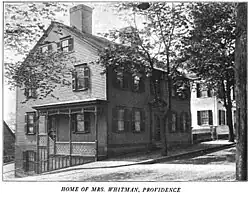 Die Wege von Whitman und Edgar Allan Poe kreuzten sich erstmals im Juli 1845 in Providence. Poe besuchte einen Vortrag seines Freundes und Dichters Frances Sargent Osgood. Als Poe und Osgood spazieren gingen, kamen sie an Whitmans Haus vorbei, während sie im Rosengarten hinter ihrem Haus stand. Poe lehnte es ab, ihr vorgestellt zu werden.[4] Zu diesem Zeitpunkt war Whitman bereits eine Bewundererin von Poes Geschichten. Gegenüber ihrer Freundin Mary E. Hewitt gab sie zu: