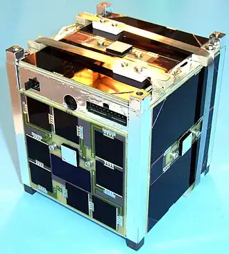 Ein Satellit (von lateinisch satelles „Begleiter, Leibwächter“), früher auch Kunstmond,[1][2] ist in der Raumfahrt ein künstlicher Raumflugkörper, der einen Himmelskörper auf einer elliptischen oder kreisförmigen Umlaufbahn zur Erfüllung wissenschaftlicher, kommerzieller oder militärischer Zwecke umkreist.