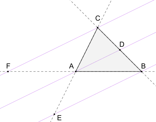 Die oben angegebene Gleichung lässt sich mithilfe des Satzes von Menelaos beweisen.