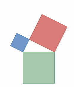 In geometrischer Deutung ist demnach in einem rechtwinkligen Dreieck die Summe der Flächen der beiden Quadrate über den Katheten gleich der Fläche des Quadrats über der Hypotenuse.