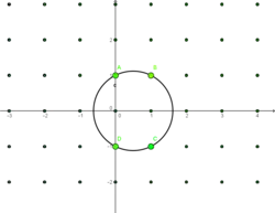 Sei eine ungerade Zahl, also . Dann hat der Kreis, der durch genau Punkte mit ganzzahligen Koordinaten geht, die folgende Koordinatengleichung: