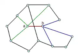 Entfernt man a und b aus G so verbleiben nur die schwarzen Kanten.