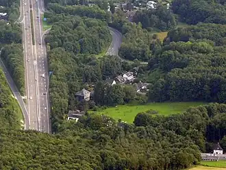 Der Ort befindet sich nördlich der Düsseldorfer Straße, die als Bundesstraße 7 klassifiziert ist, und westlich der Palkestraße. Die Bundesautobahn 535 durchquert seit Mitte der 1980er Jahre die Ortslage, deren Autobahntunnel Großer Busch teils auch als Tunnel Saurenhaus bezeichnet wird.[2]