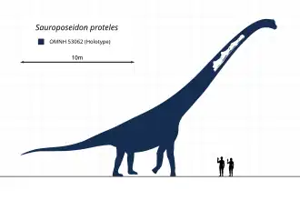 Von Sauroposeidon ist lediglich eine Serie vier sehr großer Halswirbel bekannt, der größte unter ihnen ist 1,4 Meter lang. Das sind die längsten Wirbel aller bekannten Wirbeltiere. Die Fossilien dieses Dinosauriers wurden 1994 im ländlichen Oklahoma (USA) geborgen und 2000 als neue Gattung und Art Sauroposeidon proteles erstmals wissenschaftlich beschrieben. Die Existenz von Sauroposeidon in der Unterkreide belegt, dass große Sauropoden den Übergang vom Jura zur Kreide überlebten. Über die Anatomie und Lebensweise der Gattung kann wegen der spärlichen Überlieferung nur spekuliert werden. Wie alle Sauropoden ernährte sich Sauroposeidon aber wohl von Pflanzen.
