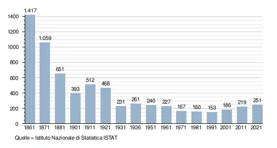 - ↑ Bilancio demografico e popolazione residente per sesso al 31 dicembre 2024. ISTAT. (Bevölkerungsstatistiken des Istituto Nazionale di Statistica, Stand 31. Dezember 2024).