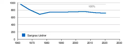 Die Bevölkerungszahlen von Savignac-Lédrier waren von 1962 bis 1975 stark rückläufig, zeigten aber bis 2004 einen leichten Anstieg, um dann erneut zurückzugehen.