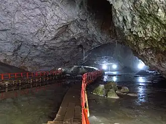 Die Scărișoara-Höhle ist die größte Touristenattraktion des Apuseni-Gebirges in Nordwestrumänien. Der Eingangsschacht mit steil abfallenden Felswänden ist 50 Meter breit und 48 Meter tief. Über eine Leiter aus Stahl, die im Stein befestigt ist, erreicht man über 450 Stufen den Höhleneingang.[2]