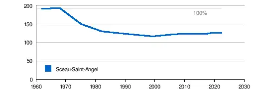 Die Bevölkerung Sceau-Saint-Angels hat ab 1968 schwere Einbußen erlebt, scheint sich aber ab 1999 wieder zu stabilisieren.