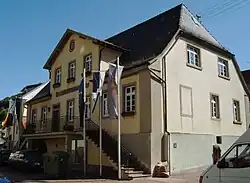 Das Rathaus steht auf den Fundamenten des Kapitelsaales des ehemaligen Zisterzienserklosters. Vom Kapitelsaal aus wurde das Kloster regiert. In ihm tagte der Konvent und wurden Verträge geschlossen. Im Kapitelsaal waren nach den Ordensvorschriften die Äbte, teilweise auch hohe weltliche Persönlichkeiten beigesetzt, wie Konrad von Hohenstaufen, Pfalzgraf bei Rhein, gest. 1195, der ein Bruder von Kaiser Barbarossa war.
