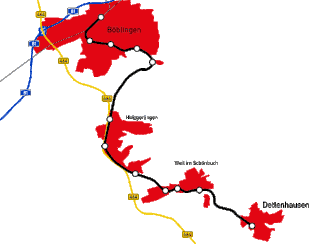 - ↑ Sybille Schurr: Schönbuchbahn soll schneller werden, Sindelfinger Zeitung/Böblinger Zeitung. 29. Juli 2009.