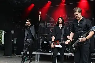 Sänger Timur Karakus ist auch Produzent des Musikvideos zum Eisbrecher-Song Schwarze Witwe (2004).[6] Schlagzeuger Manuel Di Camillo, Schlagzeuger des Jahres 2010, spielte zuvor bei Equilibrium. Der frühere Schöngeist-Schlagzeuger Till Wollenweber spielt mittlerweile bei der Münchener Electro-Punkrock-Band Mila Masu.