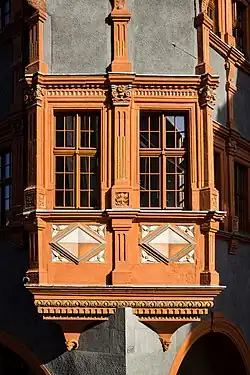 Der Erker, der mit Blick auf die Rathaustreppe errichtet wurde, der graue Putz im Kontrast zu den roten Fensterumrahmungen, die von aufwendigen Pilastern eingeschlossen wurden, hinterließen nachhaltigen Eindruck bei den Görlitzern. Schließlich musste der Schönhof höfischen Ansprüchen genügen. Die Görlitzer Renaissance nahm hier ihren Anfang.[17]