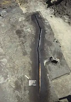 | IV | 119 cm | 2,9 cm | Kiefer | 18 Jahre | Nur in Fragmenten von 4 Teilen bis 119 cm erhalten |