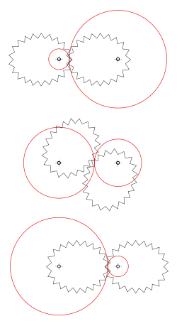 Elektrische Schüttelrutschenantriebe wurden hauptsächlich in Gruben ohne Druckluftnetz eingesetzt.[16] Da der Elektromotor eine reine Drehbewegung ausführt, muss diese Drehbewegung in eine hin- und hergehende Bewegung umgesetzt werden.[15] Dies geschieht in der Regel mit einem Ellipsenantrieb. Dieser Antrieb besteht aus zwei elliptisch geformten Zahnrädern, welche jeweils auf einer im Brennpunkt gelagerten Welle sitzen. An einem der Zahnräder befindet sich eine Kurbelscheibe, an welcher, ebenfalls konzentrisch, die Zugstange befestigt ist.[16] Der Elektromotor treibt das Zahnrad 1 an und versetzt es in ellipsenförmige Bewegung. Über die Zähne des Zahnrades 1 wird das Zahnrad 2 angetrieben. Über die Kurbelscheibe wird die Zugstange in hin- und hergehende Bewegungen versetzt und bewegt dadurch den Rutschenstrang. Andere Bauformen bei elektrischen Rutschenantrieben arbeiten nach dem Prinzip unrunder Räder. Hierbei wird die hin- und hergebende Bewegung über ein Zahnradvorgelege erzeugt, das mit Ellipsenrädern ausgerüstet ist. Die Leistungen der Drehstrommotoren sind abhängig von der Größe der Schüttelrutsche und liegen zwischen 15 und 22 kW.[15] Die Nennspannung beträgt je nach Antriebsleistung 220 Volt oder 500 Volt.[21]