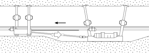 - ↑ a b c d e f J. Maercks, G. Jungnitz: Bergbaumechanik. Lehrbuch für bergmännische Lehranstalten, Handbuch für den praktischen Betrieb. Vierte umgearbeitete Auflage, mit 526 Abbildungen, Springer Verlag, Berlin / Göttingen, Heidelberg 1954, S. 104, 326, 327, 391–395.