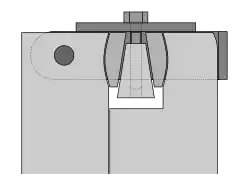 Als Schrauben werden Hammerkopfschrauben verwendet, die durch spezielle Ohren gesteckt werden.[15] Diese Ohren sind an der Unterseite des Rutschenbleches angenietet oder angeschweißt. Nachteilig bei der Schraubenverbindung ist, dass das Gewinde der Schrauben durch die Rutschenbewegungen sehr beansprucht wird. Außerdem ist das Öffnen und Schließen der Schrauben sehr zeitaufwändig.[16]