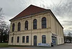 Ein Vorgängerbau des heutigen Gebäudes war 1845/1846 nach einem Entwurf von Johann Philipp August Bunge entstanden. Das heutige repräsentative zweigeschossige Haus wurde 1886 unter Einbeziehung von Teilen der Bausubstanz des Altbaus errichtet. Im Obergeschoss befindet sich ein prächtiger Saal mit die gesamte Raumhöhe umfassenden Rundbogenfenstern. Bedeckt ist der Bau von einem steilen Walmdach. Ein auf der Nordwestseite ursprünglich bestehender Anbau wurde Anfang des 21. Jahrhunderts abgerissen.