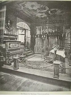 Für die künstlerische Ausgestaltung dienten die Wandmalerei und die Gemälde von Carl Wiederhold sowie der Ankauf eines auf der Deutschen Nationalen Kunstgewerbeausstellung in München 1888 prämierten Renaissancezimmers des Architekten Leonhard Romeis, München. Geb konnte weiterhin für die künstlerische Ausstattung eine Reihe von Künstlern heranziehen wie den königlichen Hofdekorationsmaler Ernst Wilke aus Hannover, den hannoverschen Bildhauer Oswald Rommel und Franz Brochier, Nürnberg, für die Raumausstattung. Dazu kam eine Arbeit des Bildhauers Albert Wolff, Berlin, und Glasmalereien aus der Werkstatt von Georg Postek, Bamberg, späterer Direktor der Landesglasmalanstalt in Budapest.