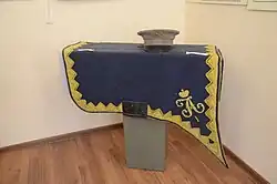 Historisch wurde die Schabracke als Schmuck über dem Woilach verwendet.[2] Die oft ausladend großen Schabracken waren vorne abgerundet und hatten verlängerte, an den Flanken des Pferdes spitz zulaufende Enden. Sie waren oft mit Bordüren, einem königlichen Monogramm oder einem Regimentswappen aufwendig verziert.[3]