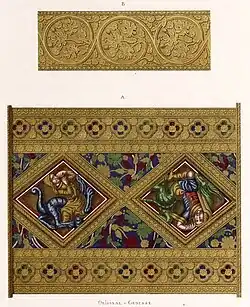 - ↑ Jakob Heinrich von Hefner-Alteneck, Carl Becker: Trachten, Kunstwerke und Geräthschaften vom frühen Mittelalter bis Ende des achtzehnten Jahrhunderts. nach gleichzeitigen Originalen. Band II. H. Keller, Frankfurt am Main 1857, S. 45 f.