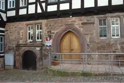 Der Portalstein mit Brezel und Jahreszahl 1557