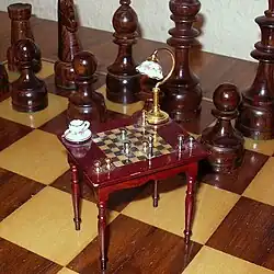 Schachtische sind meistens kleine Beistelltische, auf oder in deren Tischplatte, die eckig wie rund sein kann, ein Schachbrett eingearbeitet ist. Dieses ist entweder eine Einlegearbeit in das Holz oder besteht aus 64 zweifarbigen Fliesen, die jeweils abwechselnd im Schachbrettmuster verlegt sind. Das Material des Tisches ist klassischerweise Holz (Mahagoni, Ramin, Eiche, Walnuss), kann aber auch aus Kunststoff oder Metall sein. Oft besitzen Schachtische Schubladen, in denen die dazugehörigen Figuren gelagert werden können.
