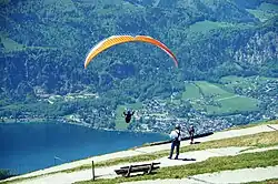 Der Schafberg ist ein bekanntes Gebiet für Gleitschirmflieger. Die Südflanke jenseits der Baumgrenze ist mit ihrem Gefälle ein idealer Startplatz. Um die Mittagszeit entsteht oft eine günstige Thermik, die genutzt wird, um rasch an Höhe zu gewinnen. Dem Gleitschirmflieger bietet sich aus großer Höhe ein Blick auf einen Großteil der Seen des Salzkammerguts.[45]