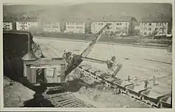 Aus Amerika importierte Bulldozer, Muldenkipper mit 9 m³ Ladekapazität und Anhängerscraper wurden in der Nachkriegszeit ab 1946 beim Bau des Flughafens Kloten eingesetzt. Das Unternehmen errichtete 1950 den ersten Erddamm in der Schweiz in Marmorera, wobei Muldenkipper mit einer Ladekapazität bis zu 12 m³ die bisher eingesetzten Kipplorenzüge ablösten.