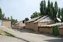 Der häufig vorkommende Ortsname ist vom persischen schahristān abgeleitet (schahr, „Stadt“) und bezeichnet in der mittelalterlichen iranischen Stadt den inneren Wohnbereich – vergleichbar der arabischen madīna – im Unterschied zur höher gelegenen Zitadelle (quhandiz) und den Außenbezirken (rabaḍ).[2] Der Schahristonsai trennt das Dorf in zwei etwa gleich große Hälften. Das Ortszentrum im Osten des Flusses wird von Markt gebildet, an dem täglich Gemüse, Obst und Haushaltswaren verkauft werden. Es gibt am zentralen Kreisverkehr einige Lebensmittelläden und ein oder zwei kleine Restaurants. Der größte Teil der besiedelten Fläche besteht aus Gehöften mit eingeschossigen Häusern, deren Wände aus Kies oder Bruchsteinen gemauert und mit Lehm verputzt sind. Unter den mit Wellblech gedeckten Giebeln lagert Winterfutter für die Tiere.