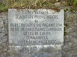 Entdeckt wurde die Felsplatte von Patnasa 1931 vom Kreisförster Walo Burkart (1887–1952). 2006 wurde die Platte gereinigt. Sie steht unter eidgenössischem Denkmalschutz[1].