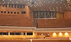 Alexander Camaro hatte große Fenster oberhalb des Foyers im Zuschauerhaus geplant. Aus Geldmangel wurde stattdessen ein nachträglich angefertigter Entwurf Scharouns gewählt. Ein ursprünglich geplanter breiter Gang im Zuschauerraum wurde durch eine schmale Nahtstelle ersetzt, um den Künstlern ein geschlossen wirkendes Auditorium zu bieten.[2] Am 3. Dezember 1971 wurde das Richtfest gefeiert.[4] Scharoun starb 1972 und erlebte die Vollendung des Gebäudes nicht. Die Baukosten betrugen 24,8 Millionen DM.[3]