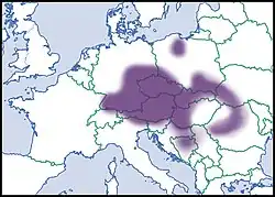 Sie kommt in den Gebirge von Südostdeutschland (Ostbayern) und Ostdeutschland (Thüringen, Sachsen-Anhalt[3] und Sachsen) vor, isoliert bei Biberach. Das Hauptverbreitungsgebiet liegt in den Ostalpen und Karpaten, in Österreich, in Tschechien und der Slowakei, Slowenien, Südpolen, isoliert in Nordpolen, Westungarn, Kroatien, Rumänien, Westliche Ukraine[4] und Bosnien-Herzegowina.[5][1]