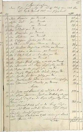 Specification der Rechnungen, welche S. Königl. M. vom 24. Nov bis 24. Dez. 1755 mir zugesandt.