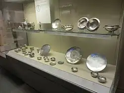 Sechs der 39 Stücke sind aus versilberter Bronze gefertigt, der Rest aus Silber. Bei vielen Objekten handelt es sich um Geschirr, das bei der Tafel benutzt worden ist. Zum Trinkgeschirr gehören unter anderem eine Kanne, zwei kleine Hemmoorer Eimer, von denen einer verziert ist, eine Kelle-Sieb-Garnitur, bei der das Sieb mit einem Scharnier mit der Kelle verbunden ist, sowie mehrere Becher.