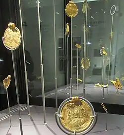 - ↑ Morten Axboe: The World’s largest Gold Bracteate: A brief presentation of the Migration Period gold hoard from Vindelev, Denmark. In: The European Archaeologist. Band 74, 2022, S. 54–62; S. 58 (englisch).