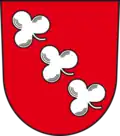 Blasonierung: „In Rot drei silberne aufsteigende Kleeblätter, schräg hintereinander.“ |