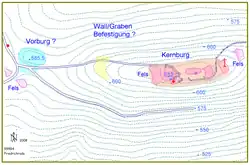 Die Ruine der Höhenburg befindet sich 1,5 Kilometer südwestlich des Stadtzentrums auf dem Gipfel des gleichnamigen Berges, der zum Nordrand des Thüringer Waldes gehört. Die deutlichsten Spuren der Burgstelle befinden sich am östlichen Rand des schon von Natur aus durch Steilhänge und schroffe Felspartien gesicherten Berggipfels, in etwa 610 bis 630 Meter über Meeresspiegelhöhe.