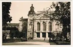 Das Schauspielhaus in Frankfurt am Main war ein 1899 bis 1902 errichteter Theaterbau am Gallustor. Der historistische Bau des Berliner Theaterarchitekten Heinrich Seeling „signalisierte mit exotisch unterfütterter Neorenaissance und einem freien Zitat der Berliner Reichstagskuppel staatstragende Bedeutung, während Jugendstildetails dezent den Willen zur Moderne andeuteten“.[1] In den 1920er Jahren wurde es ein Zentrum des expressionistischen Theaters in Deutschland und zur „Talentschmiede für Autoren und Schauspieler“.[2] Bei einem Luftangriff auf Frankfurt wurde das Schauspielhaus 1944 im Inneren teilweise zerstört, äußerlich blieb die Fassade nahezu vollständig erhalten.