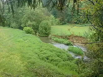 Die Schefflenz in ihrem untersten Talabschnitt, etwa einen Kilometer vor der Mündung