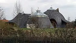 Das Gebäude wurde 1996 von Weise & Treuner im Dresdner Stadtteil Gruna auf dem Areal einer alten Bauschuttdeponie erbaut. Der Grundriss und die Bauform sind ganz dem „organischen Baugedanken“ verpflichtet.[1] Das Gebäude wirkt wie eine „märchenhafte Kulisse“, die mit naturverträglichen Materialien wie Holz, Lehm, Tonziegeln und Schiefer errichtet worden ist.[1] Unregelmäßige Fußböden und verspielte Details zitieren Friedensreich Hundertwasser. Eine zentrale Kuppelhalle beherrscht den Baukörper.