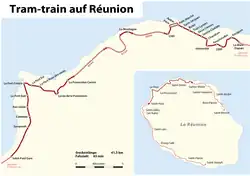 Der Schienenpersonenverkehr auf Réunion wurde von 1882 bis 1963 auf zwei Strecken in Meterspur betrieben und zugunsten des Individualverkehrs aufgegeben. Seit 2004 gibt es eine Initiative für die Wiederbelebung von Teilen der 124 Streckenkilometer.