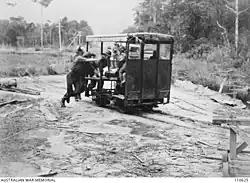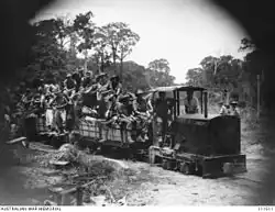 Die Angestellten der BMP versteckten während des Zweiten Weltkriegs die wichtigsten Teile der Eisenbahn vor den Japanern, die sie daher nicht betreiben konnten. Nach der Befreiung durch die 9. Division der Australian Army tauchten die verschwundenen Teile im Juli 1945 auf wundersame Weise wieder auf, und die Eisenbahn wurde schnell wieder in Betrieb genommen, um zwei 25-Pfünder Haubitzen und deren Munition nach Badas zu bringen, um damit japanische Truppen, die sich dort noch aufhielten, zu bedrängen.[9]