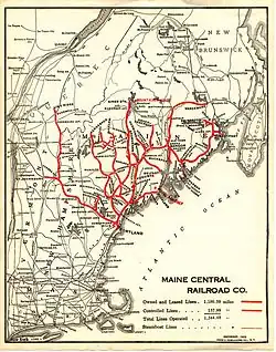 Die Geschichte des Schienenverkehrs in Maine begann, als 1836 die erste Bahnstrecke im nordöstlichsten Bundesstaat der USA eröffnet wurde und umfasst damit bereits einen Zeitraum von über 170 Jahren. Während der Güterverkehr auch die finanzschwachen Zeiten der größten Bahngesellschaften im Bundesstaat überstand, endete der Personenverkehr auf der Schiene Ende 1994 zunächst. Nach fast sieben Jahren Unterbrechung gibt es jedoch mit dem Downeaster der Amtrak seit Ende 2001 wieder Expresszüge nach Maine. Daneben verkehren einige Museumsbahnen. Das Gleisnetz hatte 1924 seine maximale Ausdehnung mit ca. 3830 Kilometern.[1] 2005 waren noch 1870 Kilometer Bahnstrecke in Betrieb.[2]