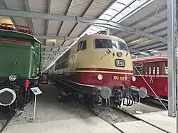 - Baureihe 103 (E-Lok, 103 197 in TEE-Lackierung),