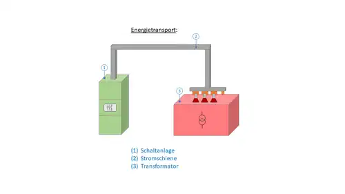 - Transformatoranschluss-Elemente zum Anschluss an die Niederspannungsseite des Transformators, üblicherweise über flexible Bänder (laminiert oder geflochten)