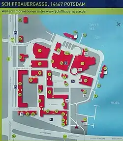 Die Schiffbauergasse ist ein Kultur- und Gewerbestandort im Potsdamer Stadtteil Berliner Vorstadt am Ufer des Tiefen Sees.