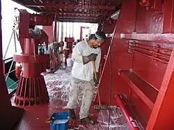 Die Internationalisierung der Seeschifffahrt hat dazu geführt, dass die meisten Besatzungen heute aus Angehörigen mehrerer Nationen bestehen. Auf deutschen Seeschiffen gibt es zwar stets eine deutsche Schiffsführung, die übrigen Besatzungsmitglieder sind jedoch fast ausschließlich Ausländer, von denen die Mehrheit 2004 von den Philippinen (36,6 %), aus China (9,3 %), Indien (8,1 %), der Ukraine (5,4 %), Russland (4,9 %), Polen (4,4 %), Griechenland (3,2 %), Kroatien (2,2 %), Lettland (2,0 %) und Korea (1,9 %) stammte.[21] Die offizielle Bordsprache ist auf vielen Schiffen Englisch, manchmal Spanisch, Russisch, Französisch oder eine national andere Sprache.